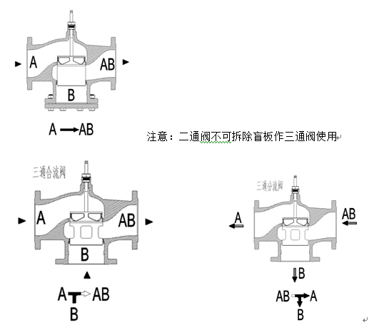閥門 | 直通A→AB | 旁通B→AB |