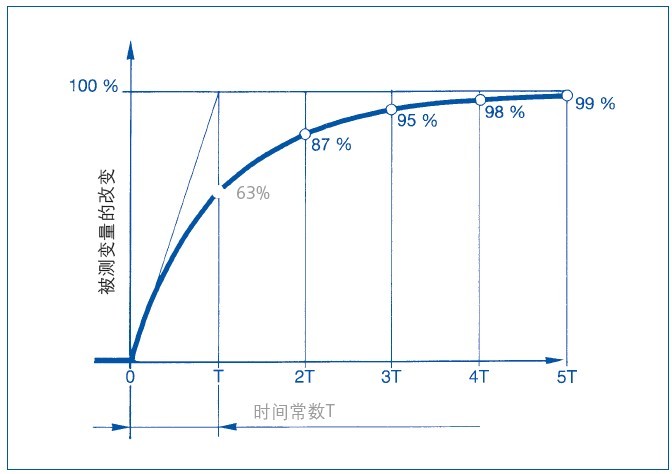 用來轉(zhuǎn)變被測物理量到63%時的變化量所需的時間稱為時間常數(shù)T。通常需要5倍于時間常數(shù)T的時間可以將被測變量99%的變化量進行轉(zhuǎn)換。