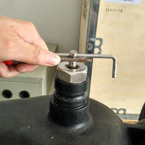 注意:若螺絲位置不正,不可用扳手強(qiáng)制旋擰,應(yīng)前后晃動(dòng)執(zhí)行器耐心糾正。正常情況下用手就可將螺母擰至頂端。
