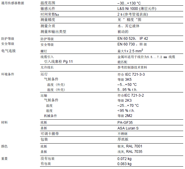 西門子室外溫度傳感器QAC2...無源型室外溫度傳感器用于采集室外溫度,更能進一步感應(yīng)太陽輻射,風(fēng)力影響與外墻溫度。安裝方式:螺絲端子防護等級:IP54用途在供熱、通風(fēng)和空調(diào)系統(tǒng)中,傳感器用作:? 氣候補償溫度控制的參考傳感器? 測量傳感器,例如:用于最優(yōu)化,或測量值顯示,或與樓宇管理系統(tǒng)連接型號概覽測量元…