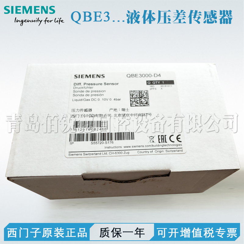 西門子壓差傳感器 | QBE3000-D4 | 液體,0-4ar,電源AC24V DC 18...33 V,輸出DC 0...10 V, G?" |